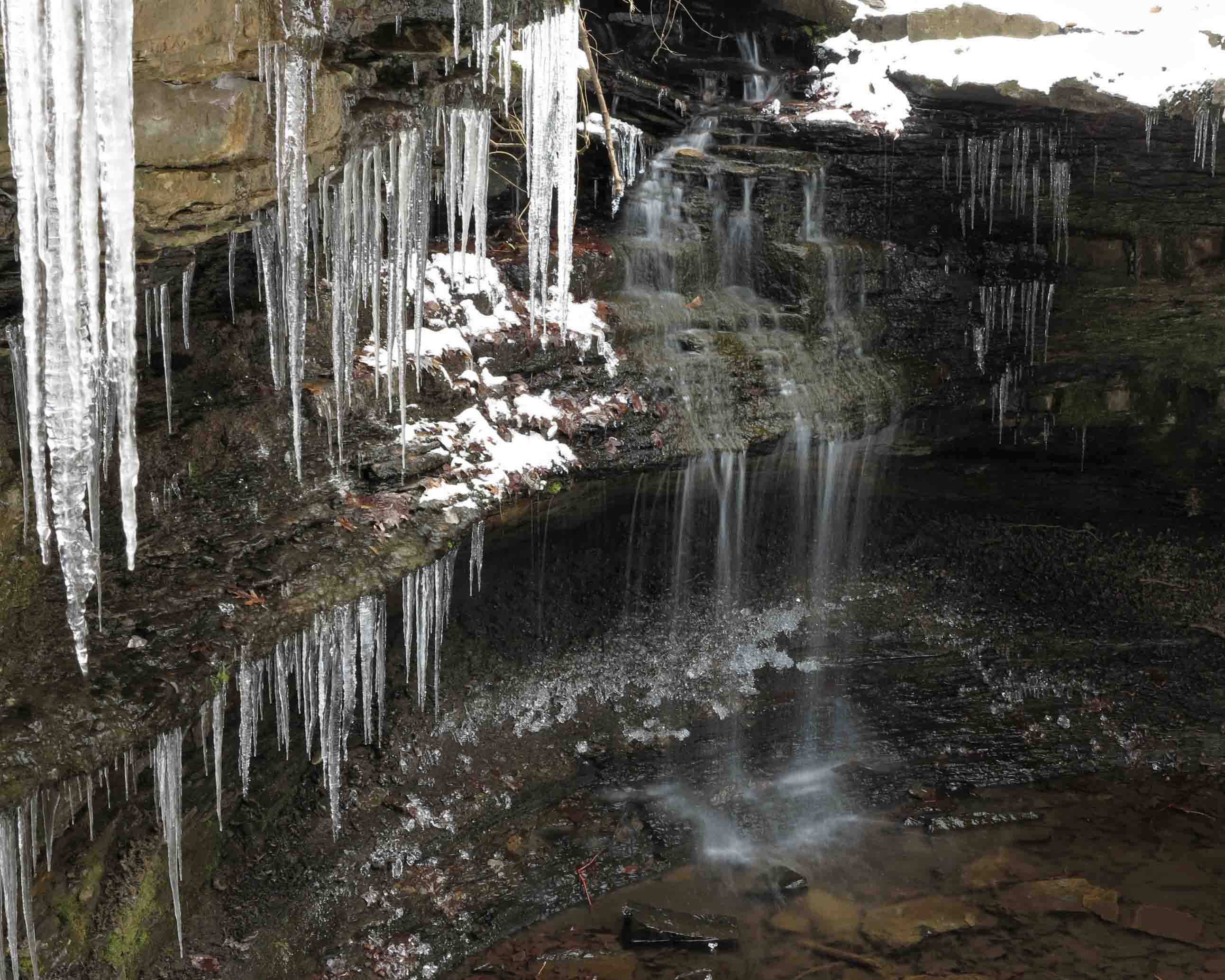 These winter pictures were taken within the last two weeks in the Ozarks. As I load these images, it is a rainy 60-degrees outside. These icy walls are gone but their stone foundations remain.