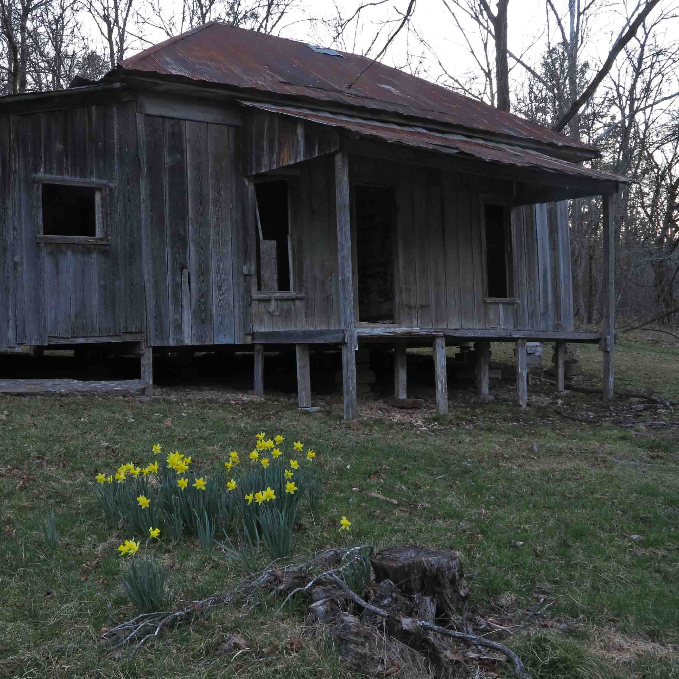 Yesterday at dusk, I photographed these new daffodils against the old backdrop of this historic structure in Rush, Arkansas. Many of the structures in Rush were built in the 1920s.