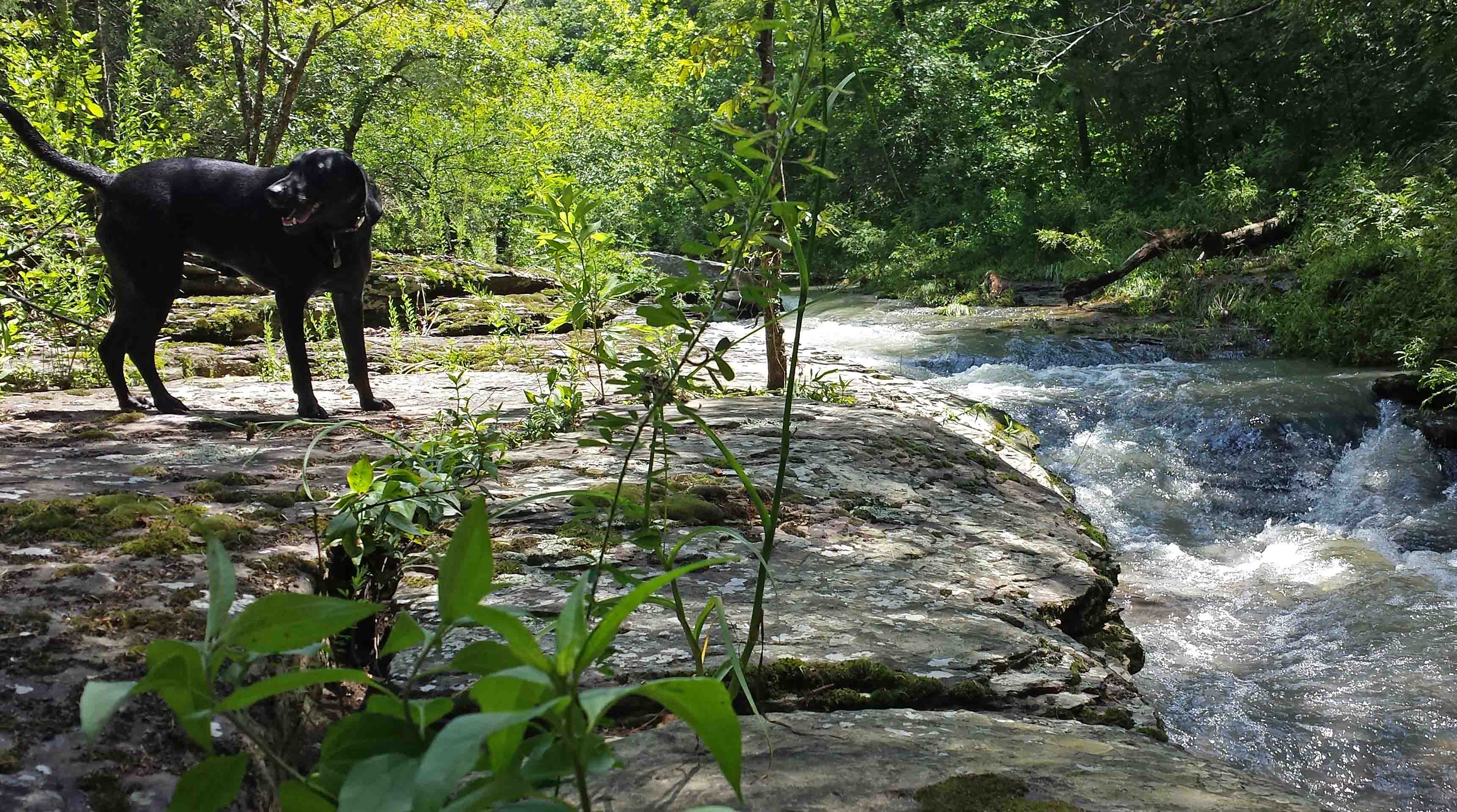 As often happens, the Ozark National Forest rewarded me with unanticipated beauty. As the upper Jack Creek flows toward the Ozark Highlands Trail, it carves its way through a high-walled canyon. The rock walls contain several rushing cascades. Hiker-dog and I enjoyed stopping along the creek for the views and to pick off ticks. Tis the season for ticks and such. I look forward to returning to this location with my real camera in fall or winter!
