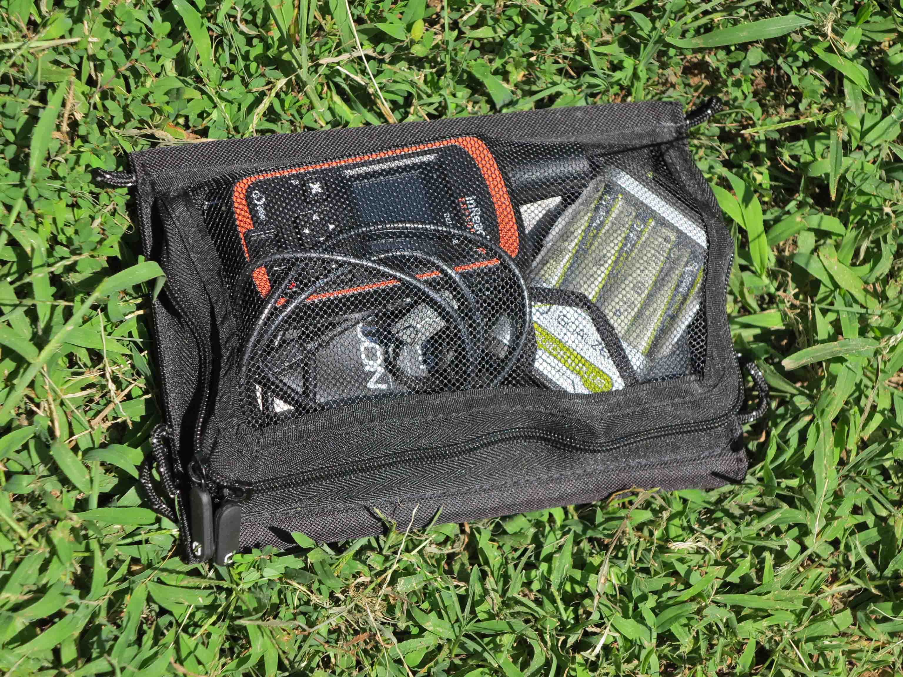 Everything packs up pretty conveniently when you fold the solar panels closed. A netted zipper pocket holds the rechargeable batteries, charger wires, and maybe even a piece of technology in case you want to store it all together. The dimensions are 6.5 x 9.5 x 1.8 inches when closed. The cost is around $120.00. It weighs just over a pound which is a lot in backpacking weight.