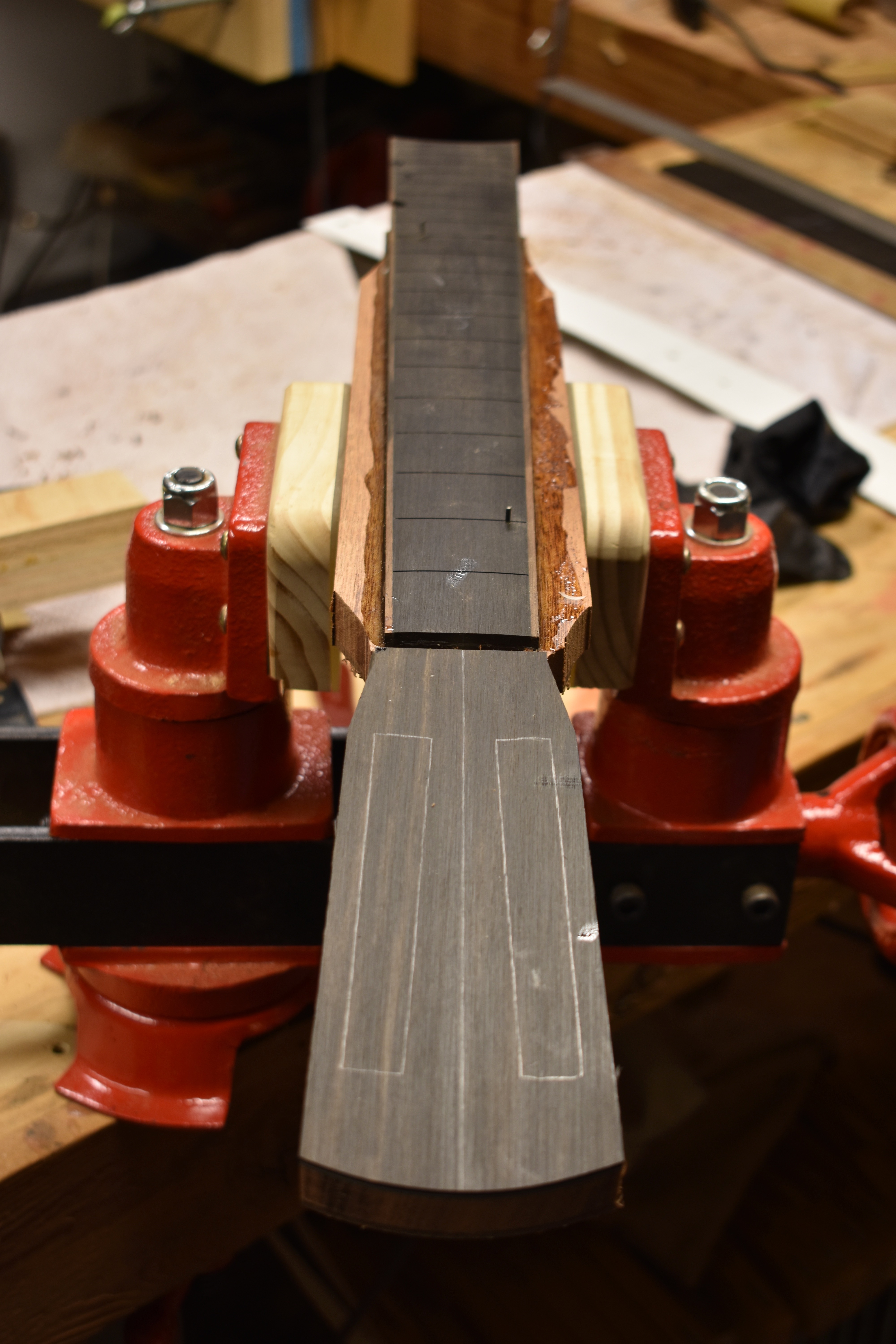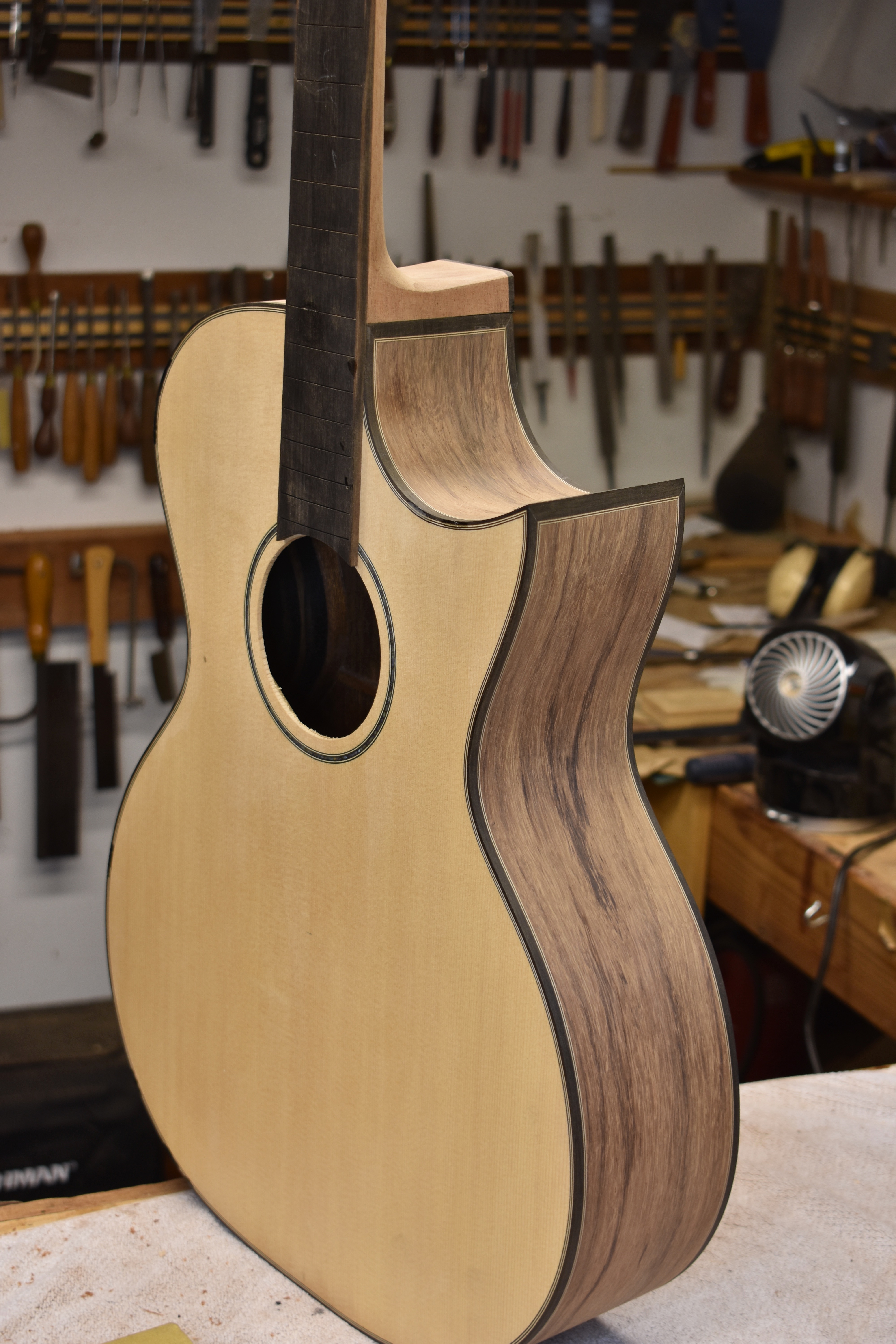 This photo gives hints at the future beauty of this instrument. The emphasis is on sound, but this guitar will also be a work of art that would make Mother proud.