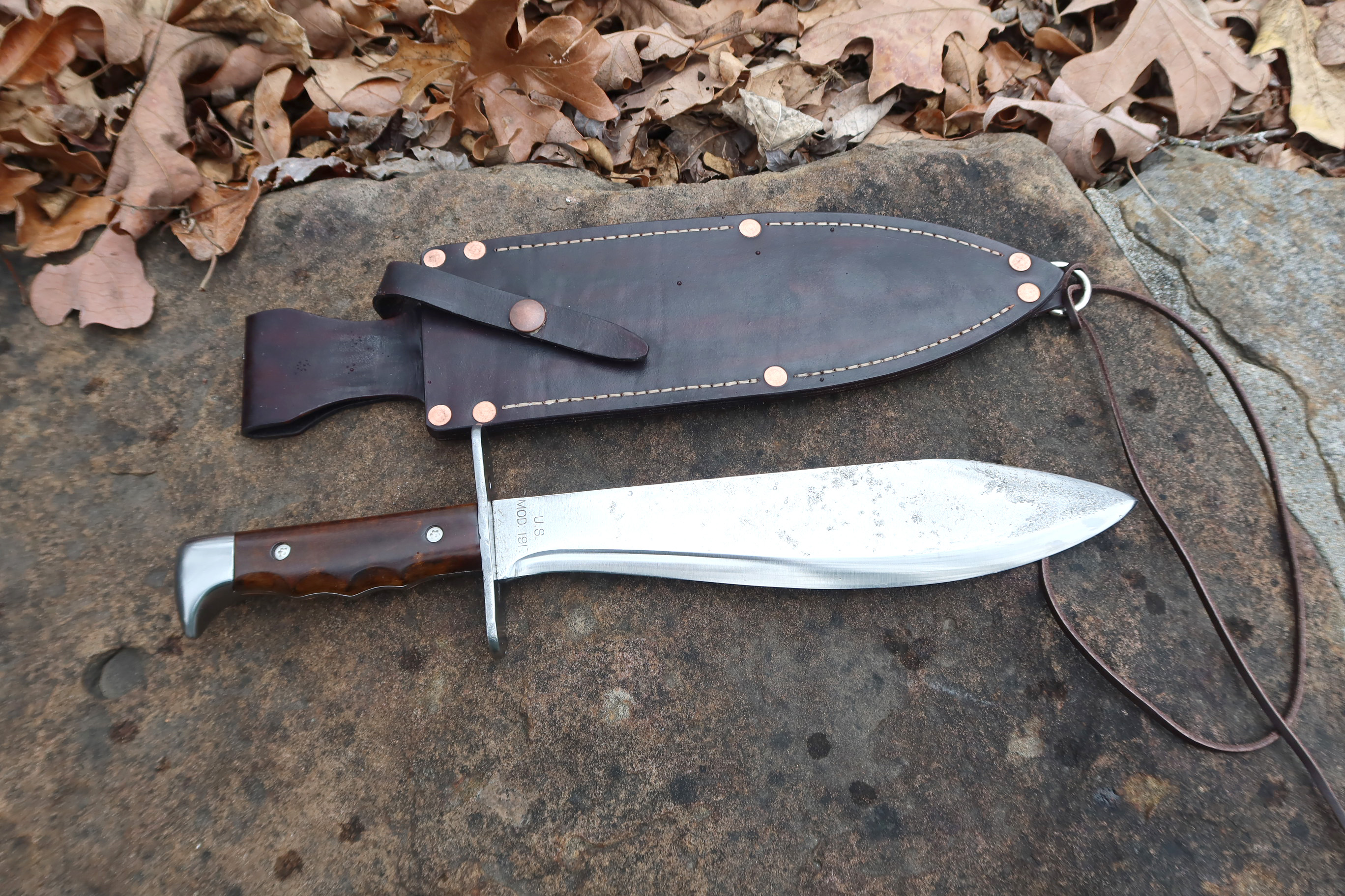 The 1917 model knife was originally used in World War I. While reading, I came across the story of Henry Johnson. He was a member of the Harlem Hell Fighters, an all-black regiment. While in France, Johnson’s position was attacked by as many as 36 armed German soldiers. The soldier with Johnson was killed leaving Johnson alone to defend the French position. Henry Johnson, using his rifle, gunstock, and a 1917 bolo knife, drove the Germans into retreat killing several. He sustained severe injuries in the fight but survived. The French Army gave Johnson special recognition and awards. He received no awards from the US Army during his lifetime. He died in poverty in 1929. On May 14, 2015, it was announced that Johnson would receive the Medal of Honor posthumously.