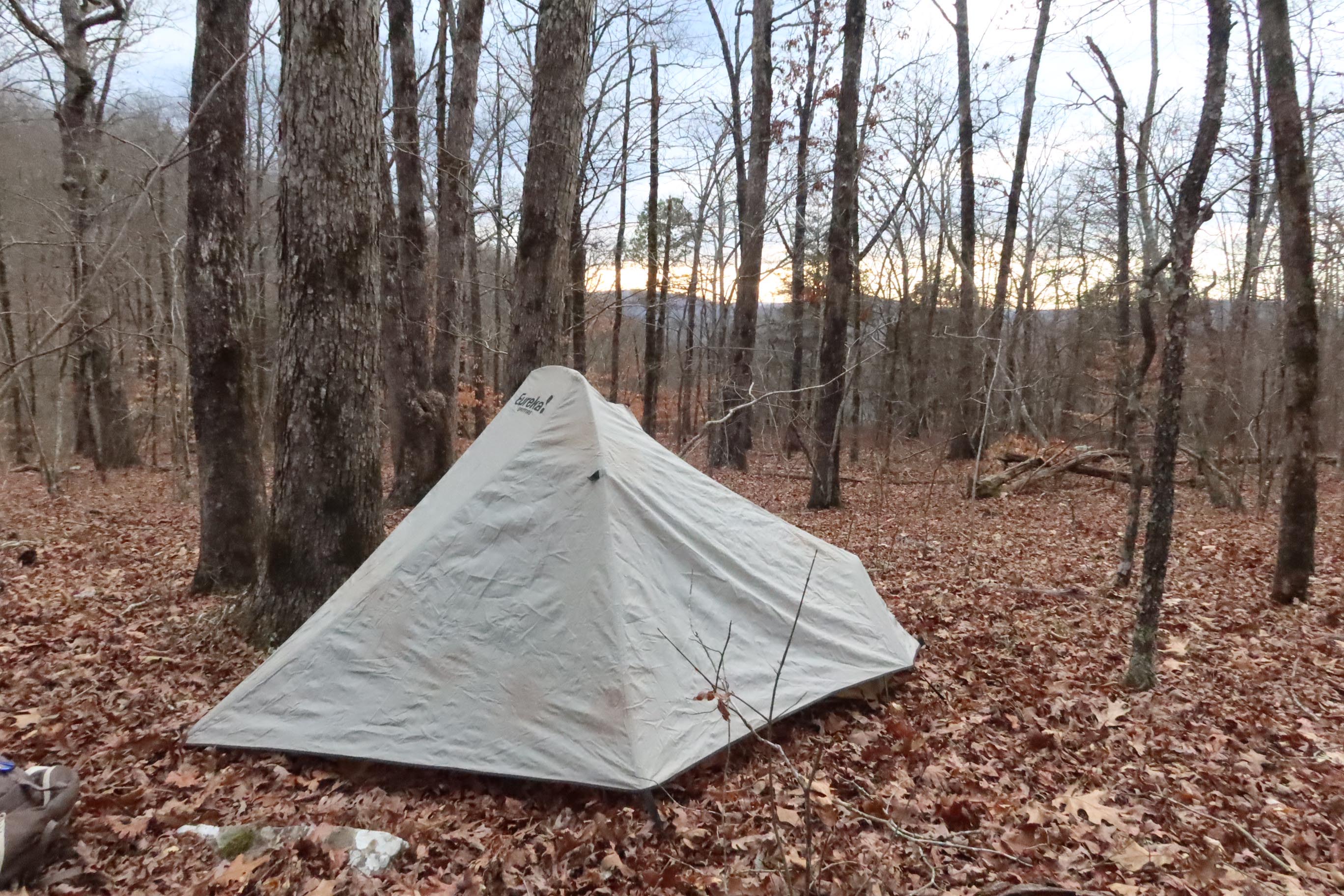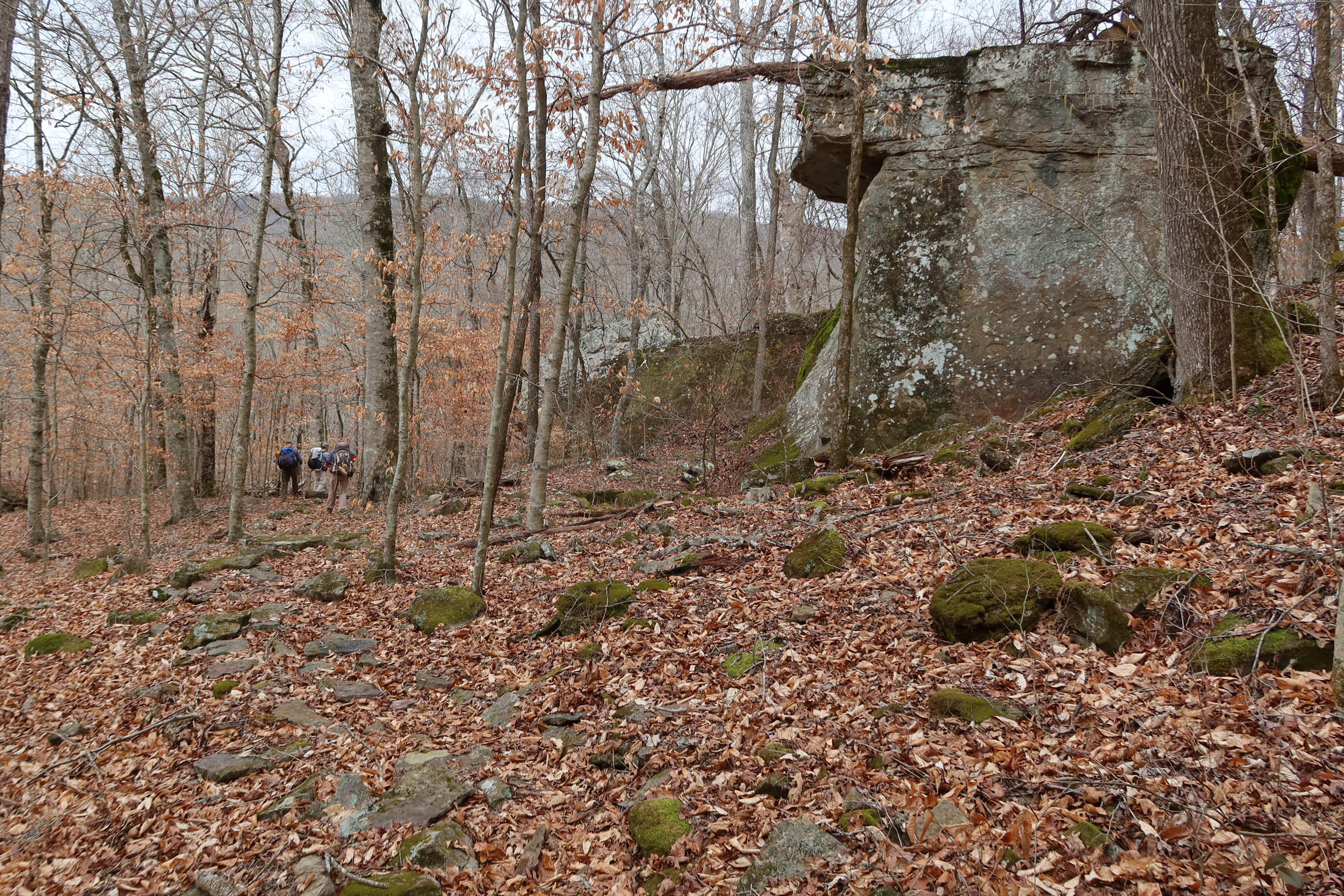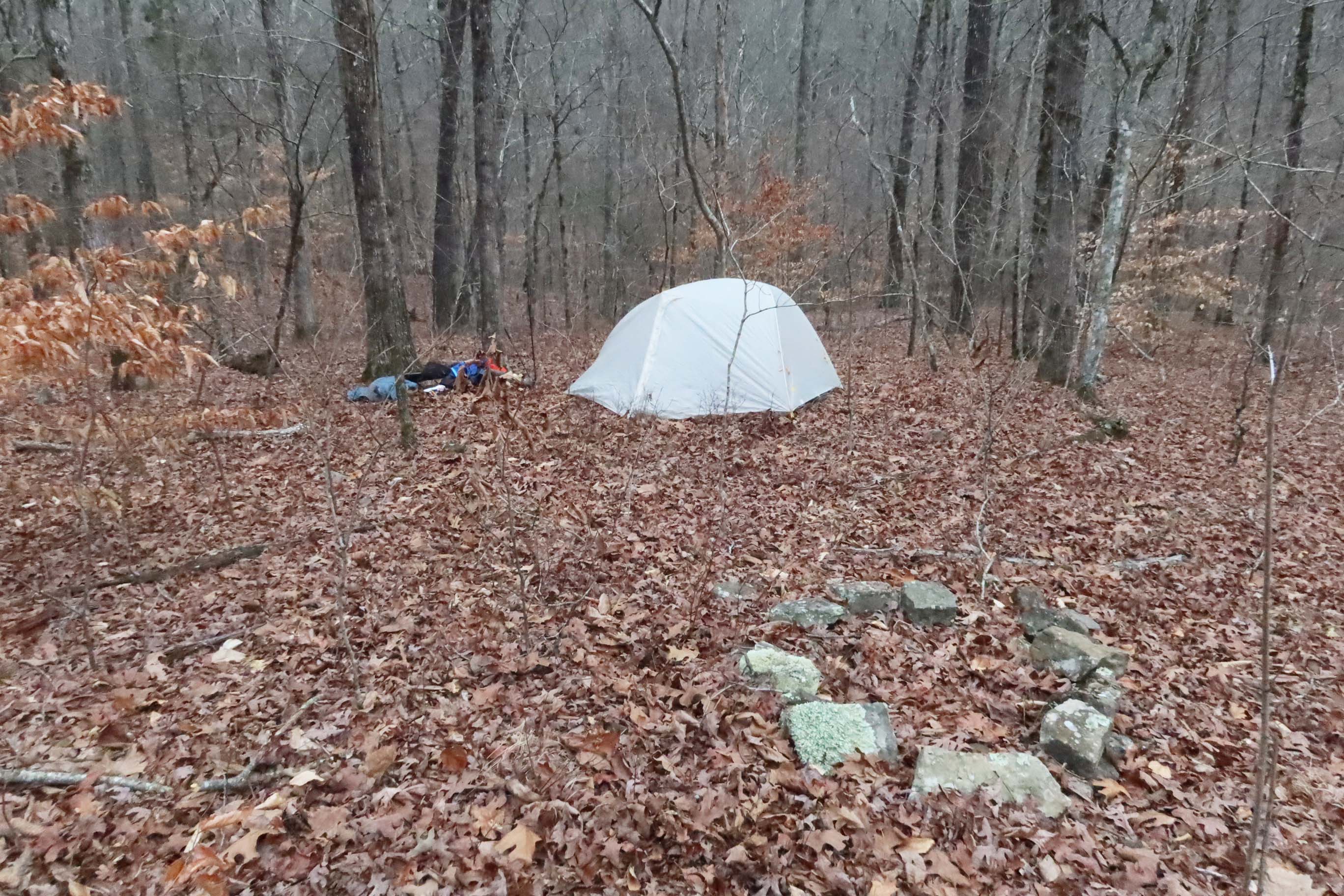 When we arrived at the Wolf Ridge campsite, it was occupied by a group of nice folks from Siloam Springs, AR. We found open spots for camping uphill away from the trail so both groups had some space. An old fire ring was close to our tents but we usually opted not to use it and turned in soon after dark.