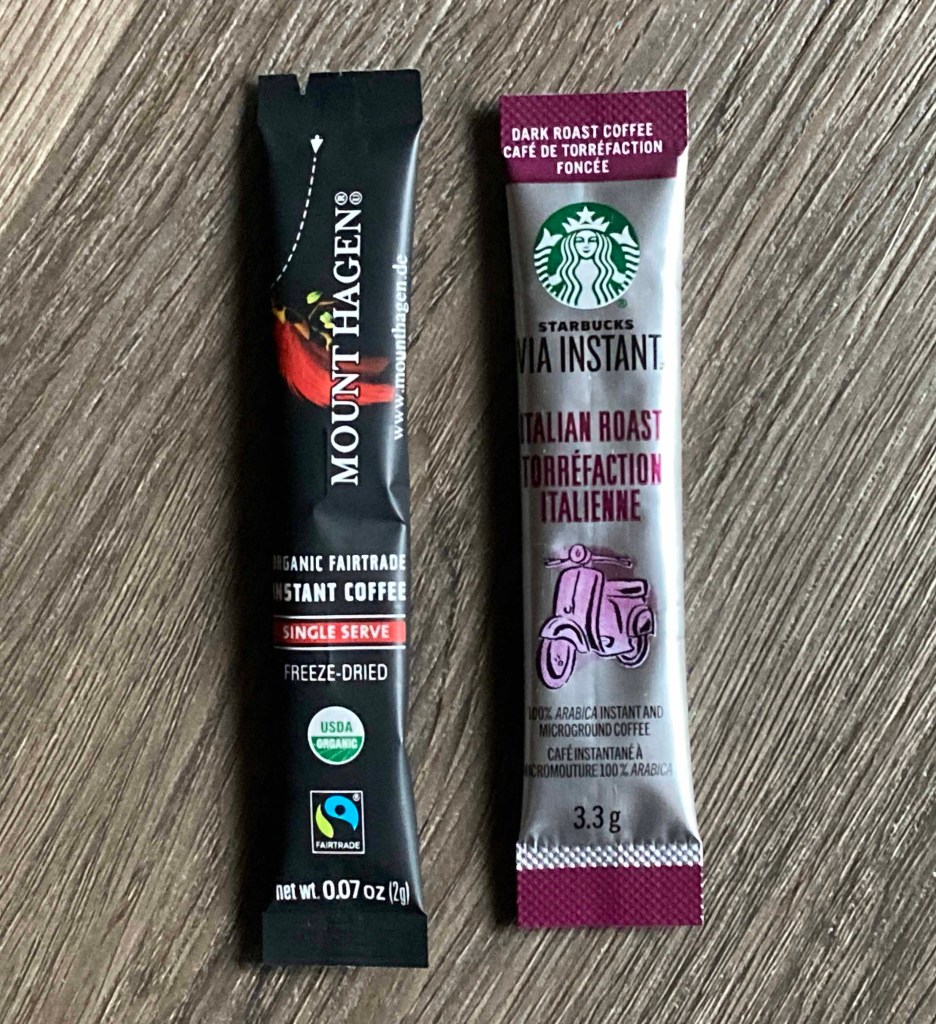 I haven’t shared my current coffee on the trail. I like both of these options that leave me with a small pice of packaging to pack out. The Starbucks is more expensive and taste slightly better to me. The Mount Hagen is cheaper and taste pretty good, too. Both taste great on the trail when made with filtered water from an Ozarks stream. Until doing this post I’d never noticed the weight. Starbucks is 3.3 grams and the Mount Hagen is 2 grams. I’d have to pack a lot of coffee before weight was a factor in my decision.