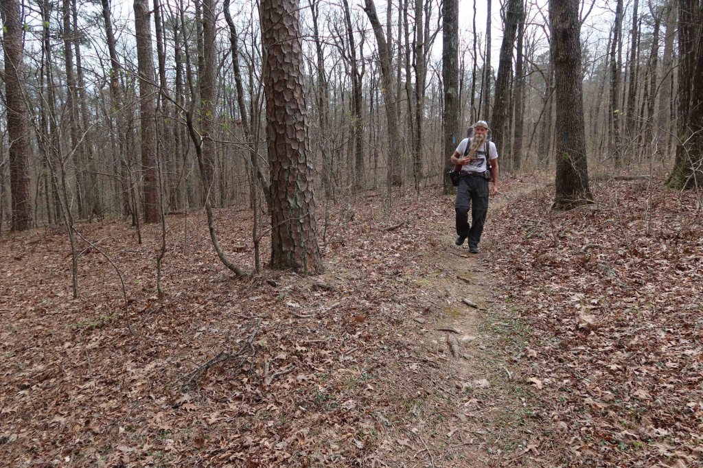 As we walked, I thought back to a thru-hike on the Ouachita Trail in the winter of 2018. Back then, flakes of ice hung from the trees and littered the ground. Quite a different scene now as a warm sun beat down on this spring day.