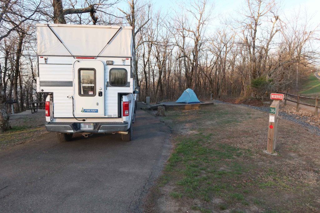 Our first night was at Queen Wilhelmina State Park. We were “Glamping” with nice campsites, access to restrooms, and a restaurant close by. I almost felt guilty in my truck camper while Bob and Kerry tent camped but both options gave a good night’s sleep. I look forward to using this campground and the nearby Winding Stairs Campground again. Rich Mountain and the Queen Wilhelmina area are great camping destinations.