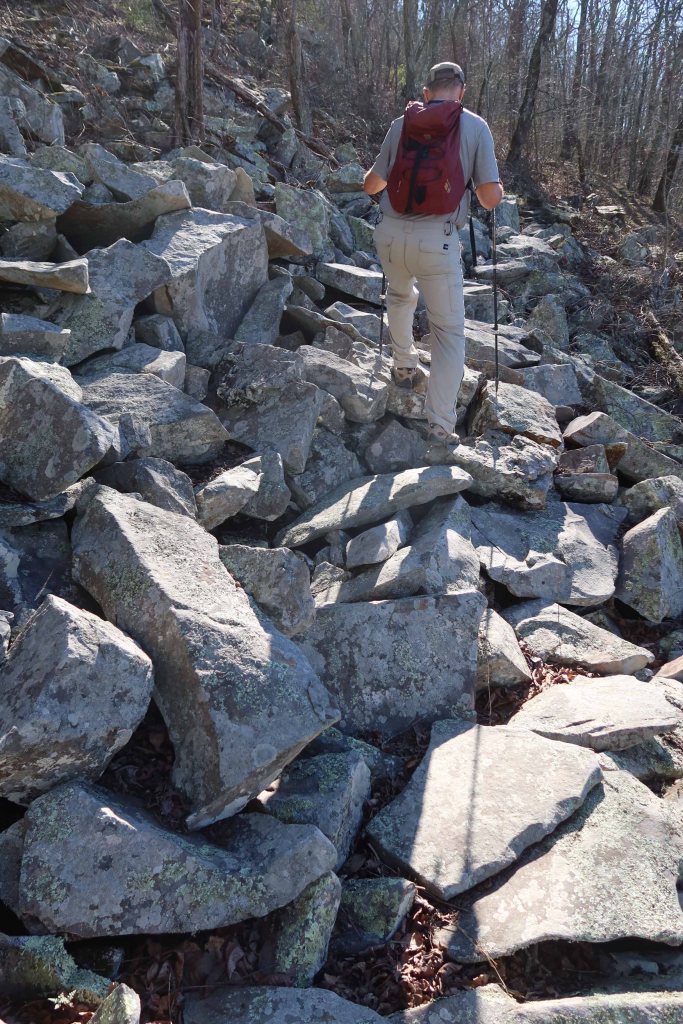 The next morning, we began working our way up Black Fork Mountain through alternating pine groves, hardwood forests, and scrub oaks along high ridges. The hardest part was following a reroute down below a rockslide. Every step down meant another uphill step later to regain the elevation lost.