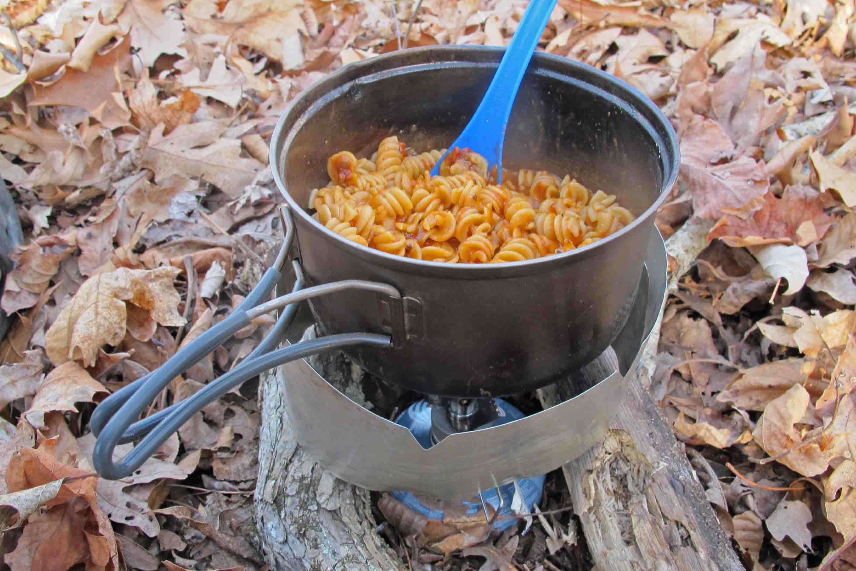 Supper was boiled potatoes followed by pasta and sauce that I’d dehydrated, but not used, for a trip in December. Tasted great even after three months of storage.