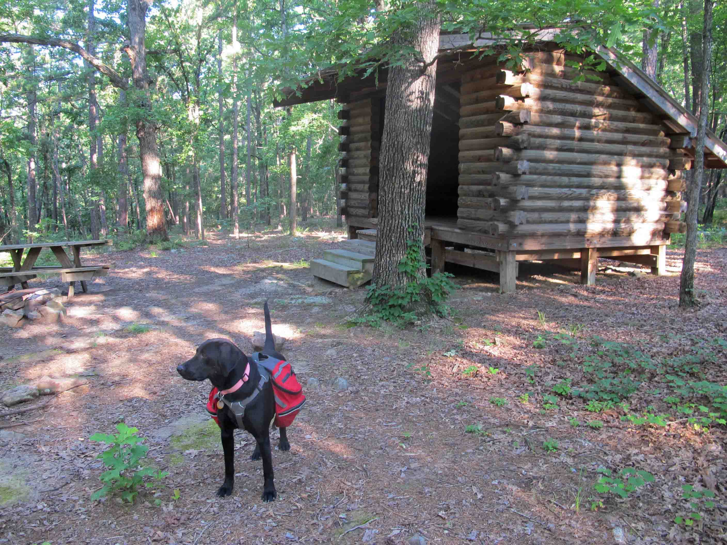 Lesson three: Hiker is a good camp guard dog.  You wouldn’t think it because she’s everybody’s best friend, never growling or barking in anger.  During this night, she heard a suspicious sound and gave several barks that were very different than I’d heard before.  She seemed to say, “Noooo! This is our campsite.  Stay away!” She also growled like I’d never heard.  Whatever troubled her left the area.