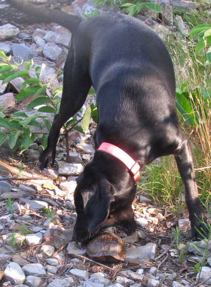 Hiker trying to carry a turtle. She gave up quickly.