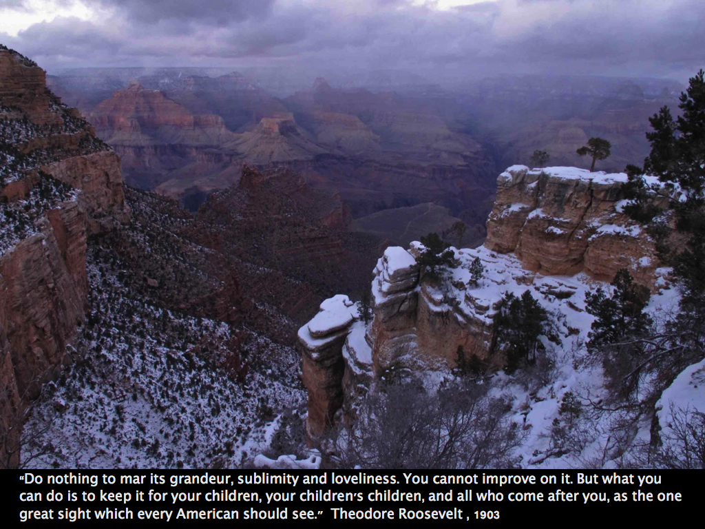 Looks like we’re determined to damage the Grand Canyon. The above picture was from a backpacking trip two winters ago. Our views across the canyon were unimpeded by the development of hotels or other tourist structures. We’ve seen enough development around the Grand Canyon. Present levels of development allow people to enjoy the views safely. I hope the proposed additional development will not go forward.