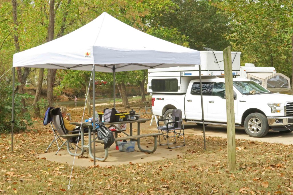Becca was a truck camper pro on this trip, having prepared food without need for refrigeration. Our Four Wheel Popup Camper gave us flexibility on accommodations and a light load. Ours is a shell model that is light and simple. The awning is essential and gives us a protected outdoor space for meals, reading, and resting.