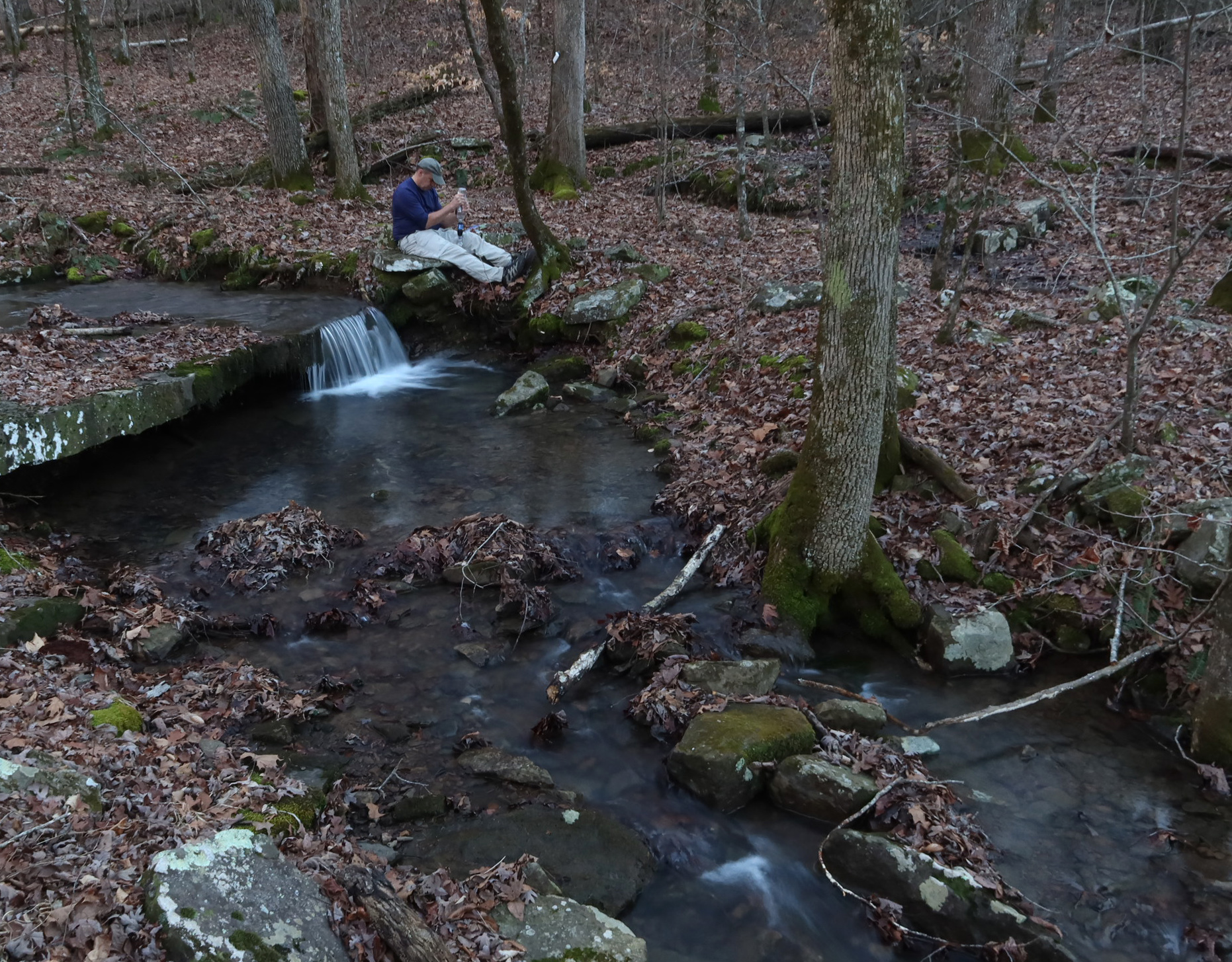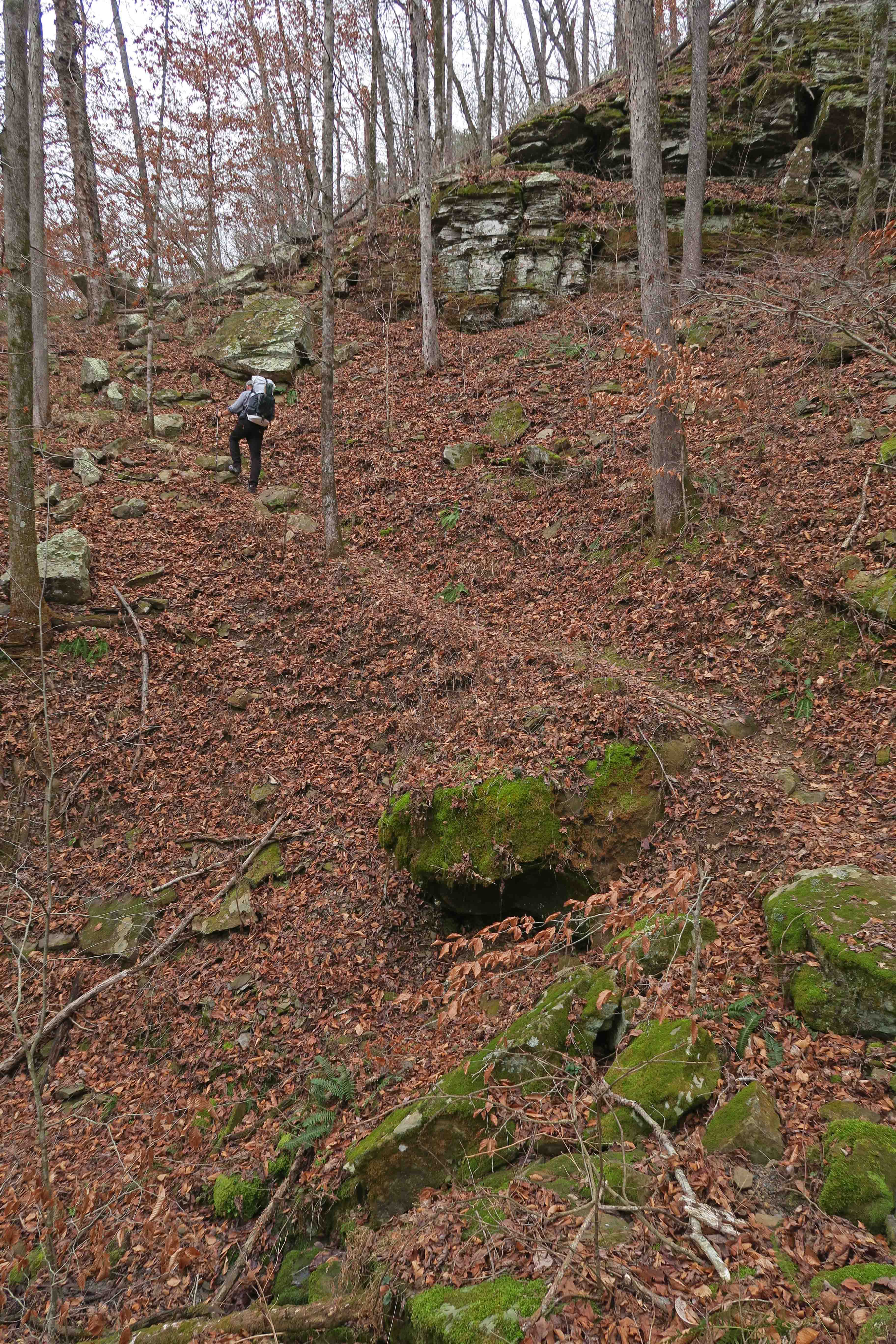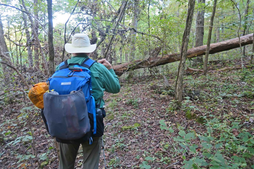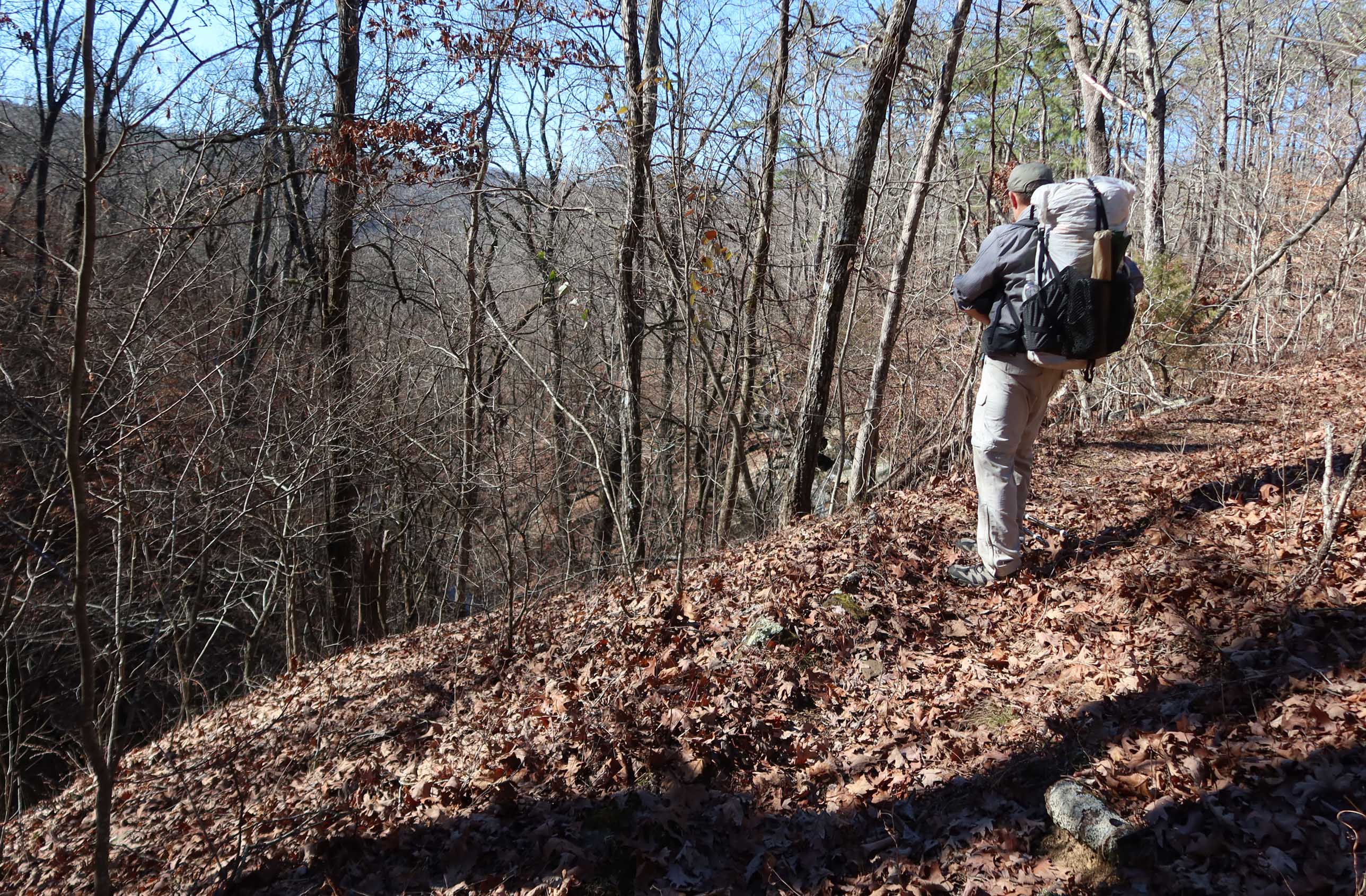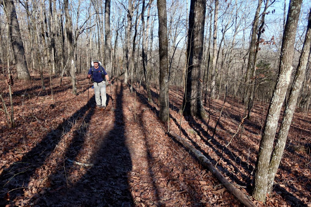 It was 9 a.m. by the time I arrived at Arbaugh Trailhead, where we would walk the Ozark Highlands Trail (OHT) west to the other side of Lynn Hollow. Temperatures hovered just above freezing.