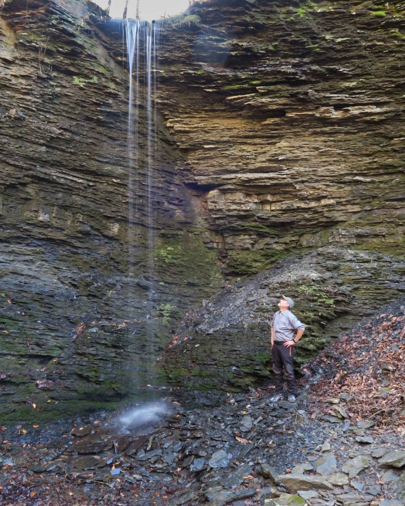 Once at the pool, we crawled under a rock ledge and took a few photos of the incoming cascade. Great little spot for a break!